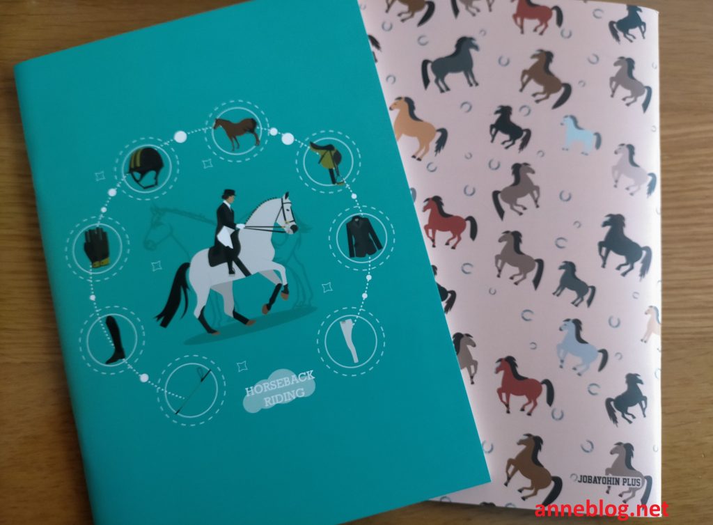 リーズナブルに乗馬用品を購入できる「乗馬用品プラス」さんを利用することが多く、購入後にレビューを書くとめっちゃかわいいノートがお礼として送られてきます。